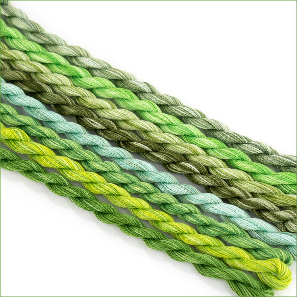 - a selection of 8 skeins of hand-dyed size 12 pearl cotton